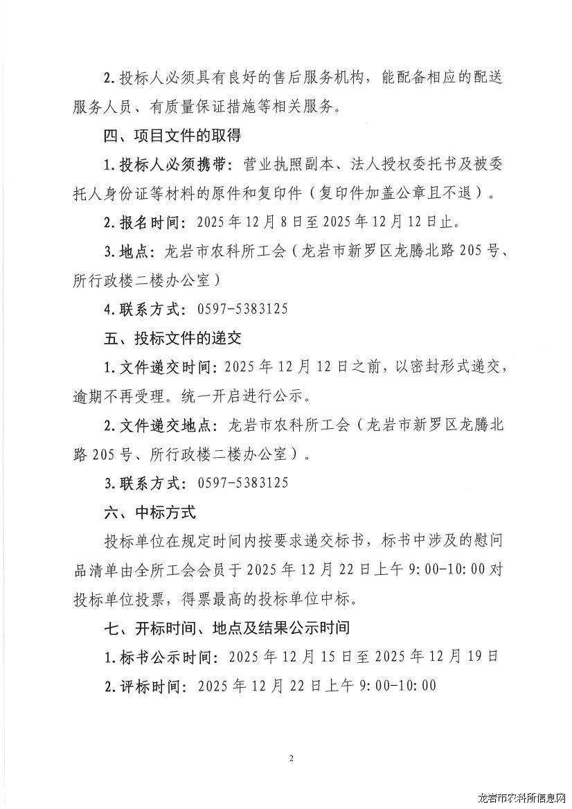 龙岩市农科所工会2026年度和2027年度会员节日慰问品项目招标公告