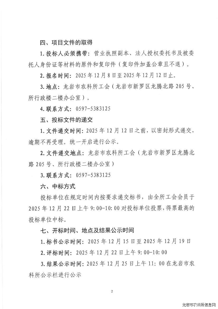 龙岩市农科所工会2026年度和2027年度会员节日慰问品项目招标公告